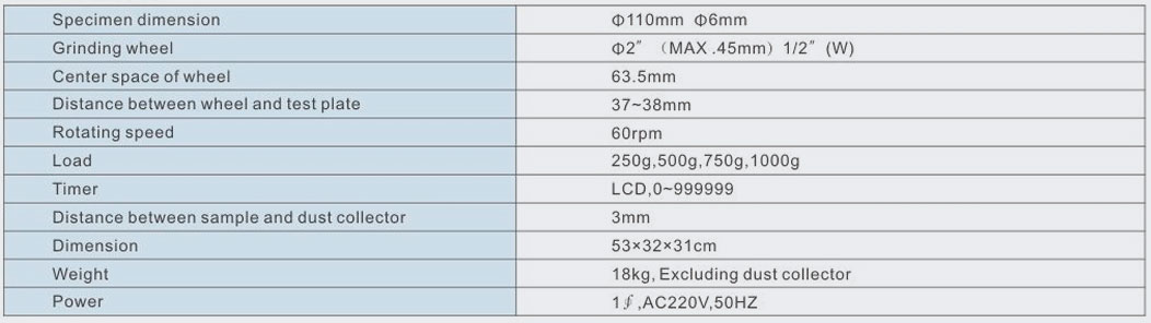 Uses:This machine is used to do the test of wear-resistant in surface, leather, cloth, paint, paper, flooring,plywood, glass and natural rubber.The method is usingthe standard knife cutting the specimen, and then usingthe regulated models of grinding wheel with loadingweight to be abrased.